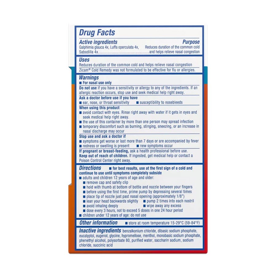 Zicam Cold Remedy Cold Shortening No-Drip Zinc-Free Nasal Spray - 0.5oz