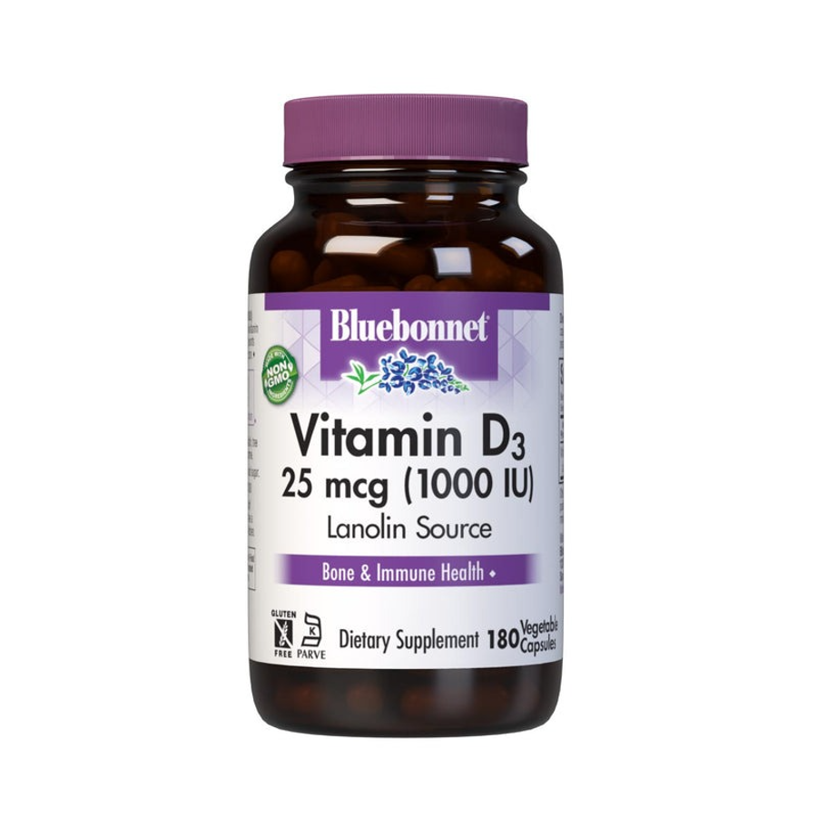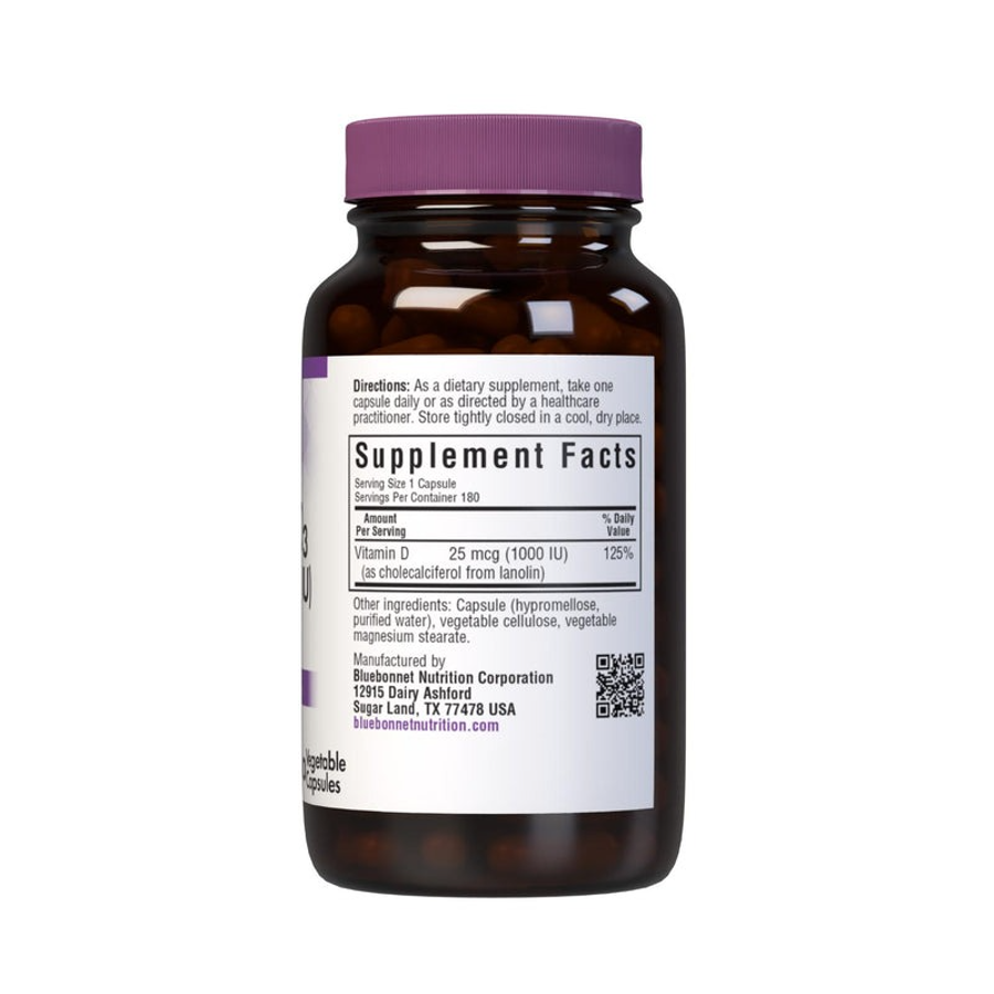 Bluebonnet Vitamin D3 1000 IU, 180 Vegetable Capsules