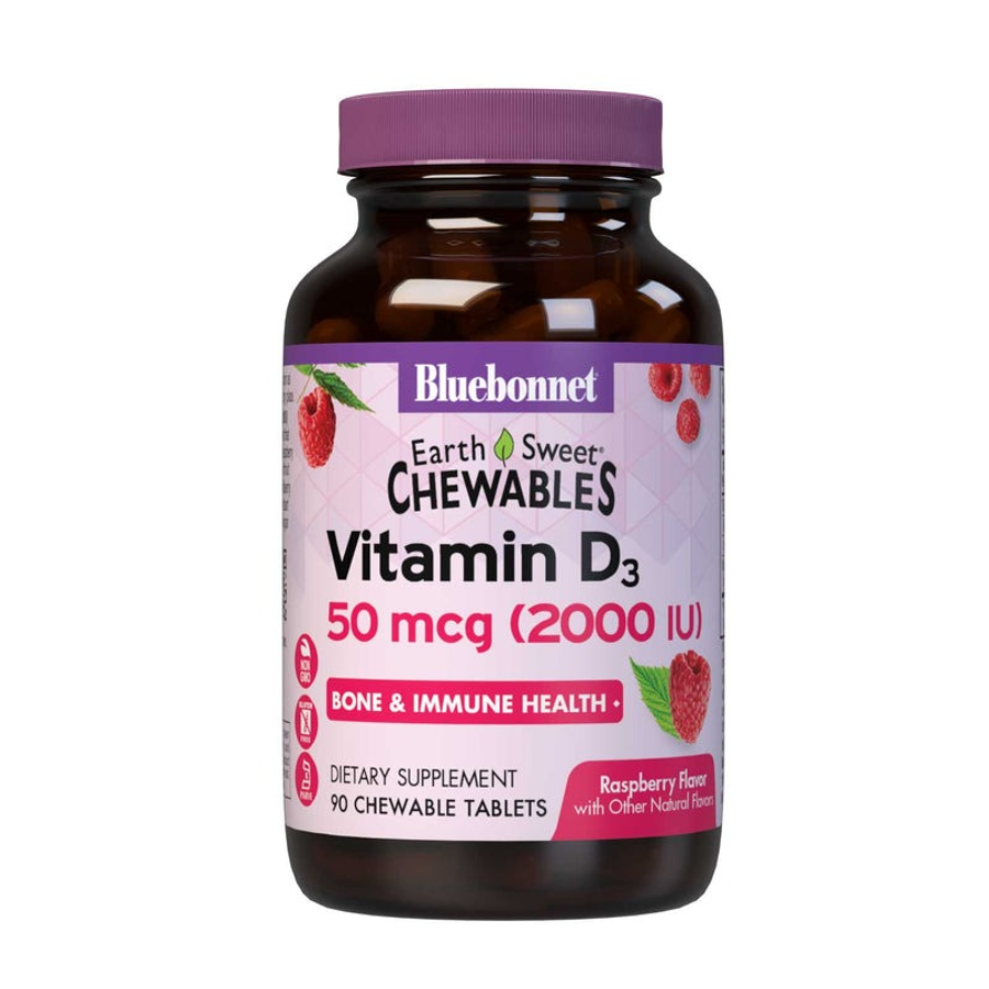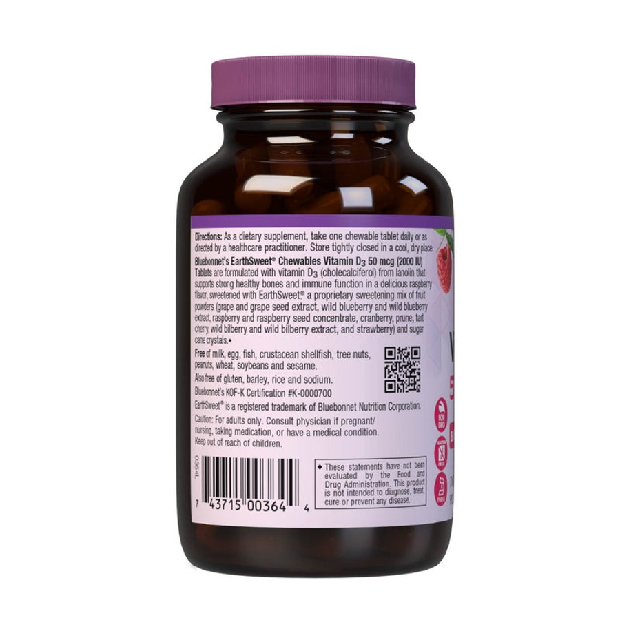 Bluebonnet Earthsweet Vitamin D3 2000 IU Raspberry Flavor, 90 Chewable Tablets