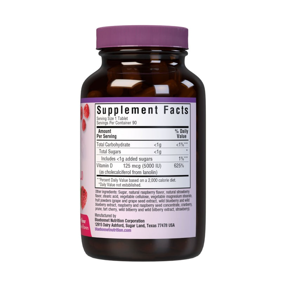 Bluebonnet Earthsweet Chewables D3 5000 iu Raspberry Flavor, 90 Chewable Tablets