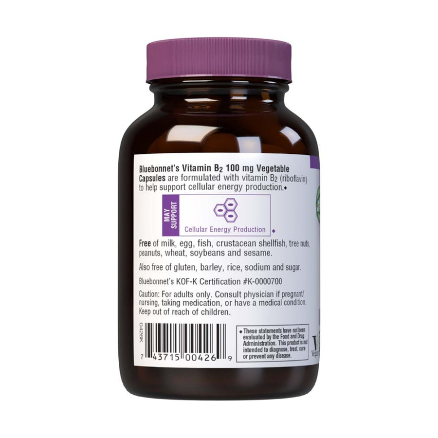 Bluebonnet's Vitamin B-2 100 mg Capsules provide a pure crystalline vitamin B-2 (riboflavin). Available in easy-to-swallow vegetable capsules for maximum assimilation and absorption.