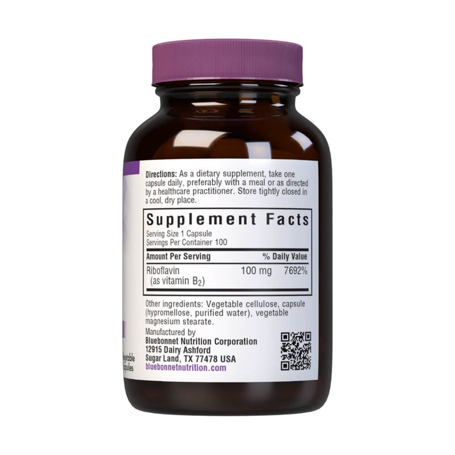 Bluebonnet Vitamin B2 100 Mg - 100 Vegetarian Capsules