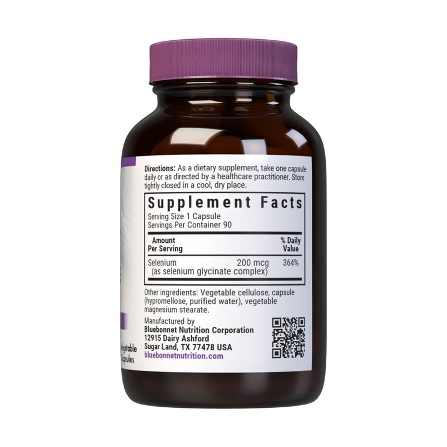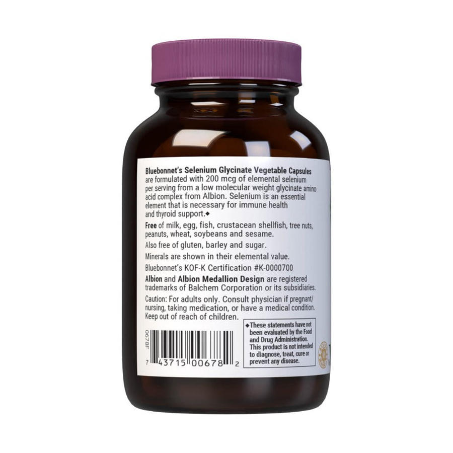 Bluebonnet's Selenium Glycinate 200 mcg Capsules are a low molecular weight selenium glycine, an amino acid complex mineral. Available in easy-to-swallow vegetable capsules for maximum assimilation and absorption.