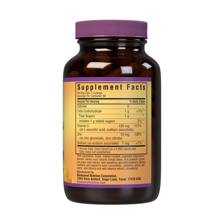 Bluebonnet's EarthSweet® Chewables Zinc Lozenges 15 mg are formulated with zinc gluconate/citrate, along with vitamin C from L-ascorbic acid and sodium ascorbate to support immune health. Sweetened with EarthSweet®, a proprietary sweetening mix of fruit powders and sugar cane crystals.