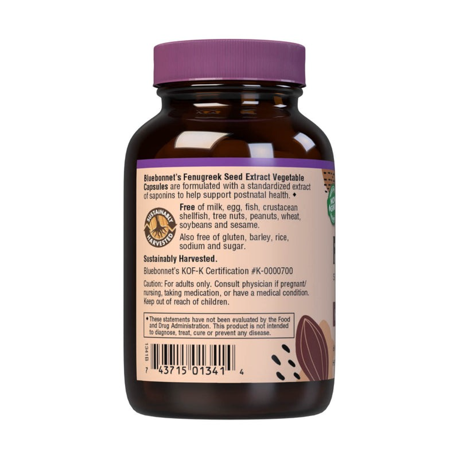 Bluebonnet's Standardized Fenugreek Seed Extract Capsules provide a standardized extract of total saponins, the most researched active constituents found in fenugreek. A clean and gentle water-based extraction method is employed to capture and preserve fenugreek's most valuable components. Available in easy-to-swallow vegetable derived capsules for maximum assimilation/absorption and for a truly vegetarian/vegan formula.