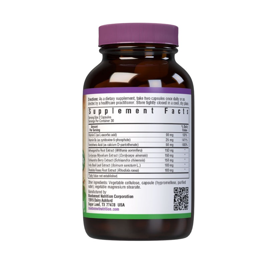 Bluebonnet's Targeted Choice® Adrenal Support Capsules are specially formulated with a unique blend of sustainably harvested or wildcrafted herbal extracts that help promote a healthy response to stress while also maintaining healthy energy levels. Essential nutrients incorporated to optimize adrenal gland function critical to helping the body adapt to stress in a balanced way. Available in easy-to-swallow vegetable capsules for maximum assimilation and absorption.