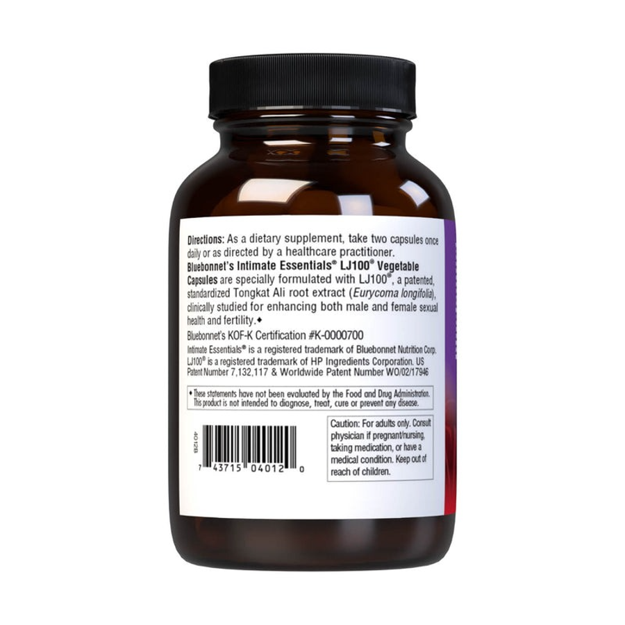 Bluebonnets Intimate Essentials LJ100 Capsules are specially formulated with LJ100, a patented, standardized Tongkat Ali root extract (Eurycoma longifolia),clinically studied for enhancing both male and female sexual health and fertility. Available in easy-to-swallow vegetable capsules for maximum assimilation and absorption.