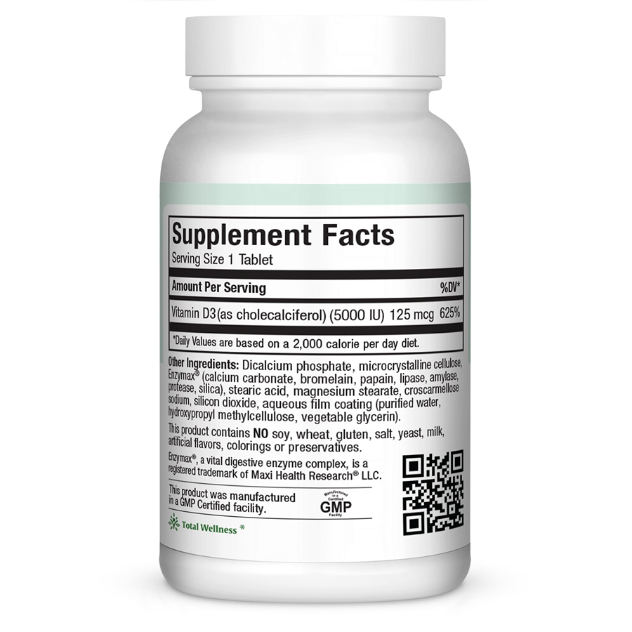 Maxi D3 5000 is made with 125 mcg (5000 IU) of vitamin D3, the most absorbable form of vitamin d. That’s why you want vitamin D3 preferred over vitamin D2.