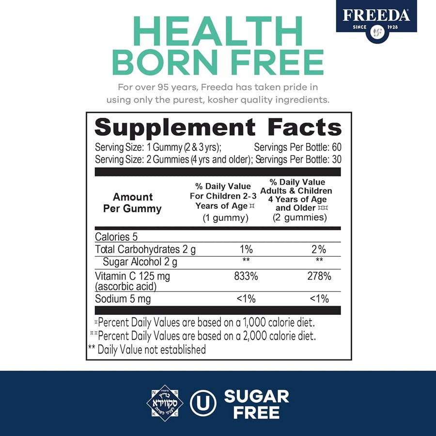 Freeda Chewable Vitamin C 125 mg Gummies Sugar-Free - Orange Flavor, 60 Gummies