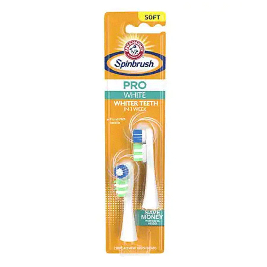 Arm & Hammer Spinbrush Pro Series White Electric Toothbrush Replacement Heads, Soft, 2ct