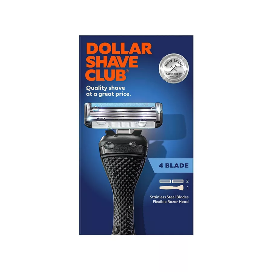 The Dollar Shave Club 4 Blade Starter Set is finally here. This bundle contains a diamond patterned grip handle and two replacement stainless-steel razor cartridges