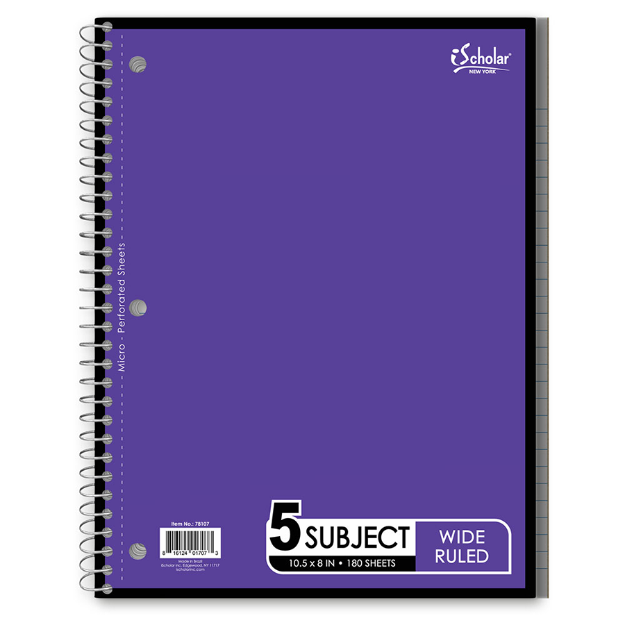 5 Subject Wirebound Notebook, 10.5″ x 8″, Wide Ruled