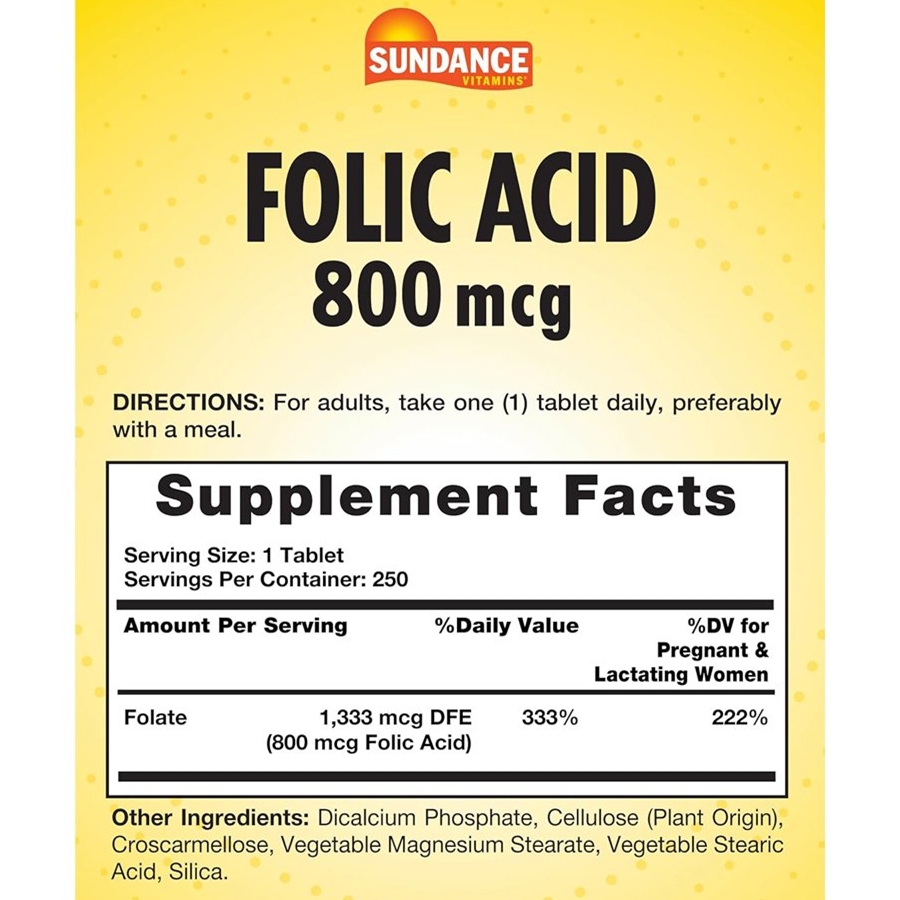 Sundance Folic Acid 800 Mcg Tablets, 250 Ea