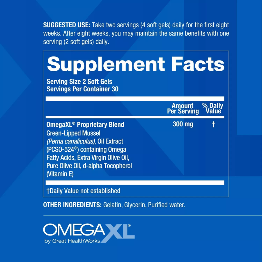 XL BENEFITS BEYOND OMEGA-3s - The ultimate joint health and mobility support supplement. OmegaXL goes beyond standard omega-3 supplements that mainly contain just EPA and DHA. It is a concentrated source of green-lipped mussel oil packed with a powerful combination of healthy fatty acids and lipid mediators. Backed by over 35 years of clinical research, this high-potency blend promotes joint, muscle, immune and respiratory health.