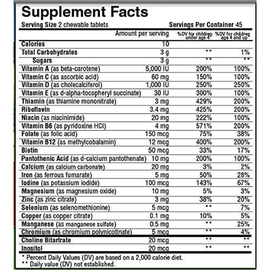 Delicious cherry flavor chewable multivitamin formulated for children. It encompasses a broad spectrum of high quality vitamins and trace minerals that are crucial for your child’s proper nutrition, health and well-being.