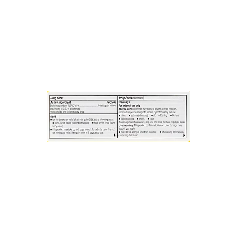 Contains diclofenac sodium topical gel, 1%, a non-steroidal anti-inflammatory (NSAID) for the daily treatment of arthritis pain