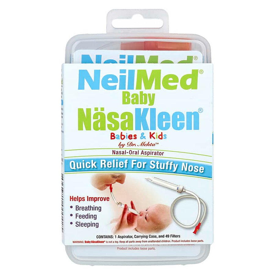 Baby NäsaKleen is a nasal aspirator used to remove excess mucous from baby's noses. Baby NäsaKleen is particularly recommended prior to feeding your baby or before sleeping.