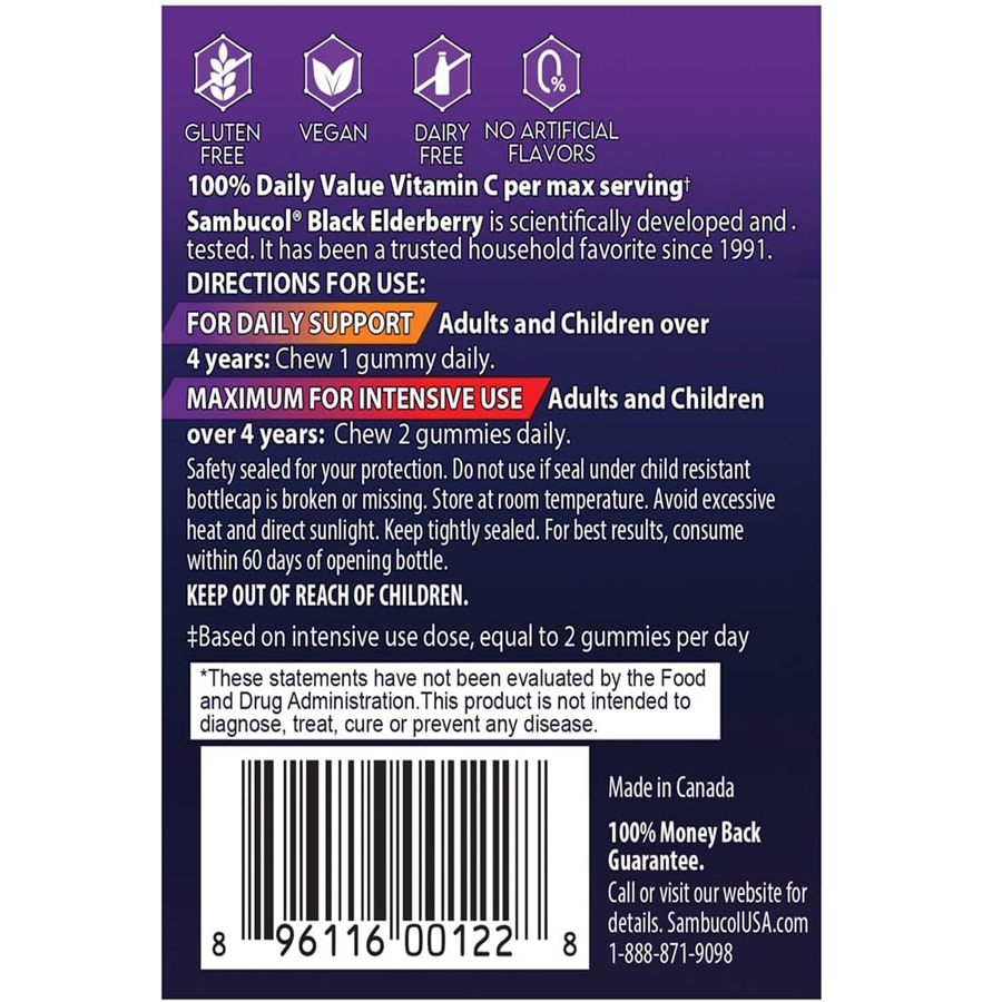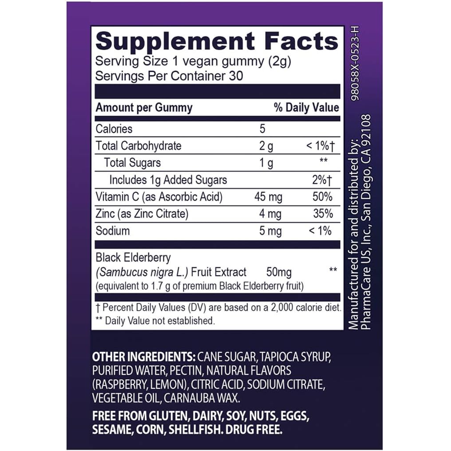 Sambucol Black Elderberry Immune Support Vegan Gummies with Vitamin C and Zinc - 30ct