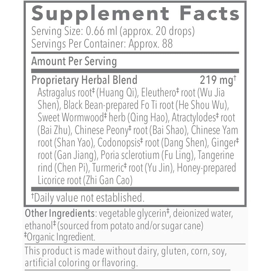 Biotonic is an expertly-crafted blend of time-tested Chinese herbal combinations, specialized to provide the perfect balance of digestive function and energy restoration. With additional support for the liver in detoxification, Artemesia for general defense against imbalance, and Licorice targeting adrenal stressors - this special extract offers much needed vitality when fatigue or low energy persists.