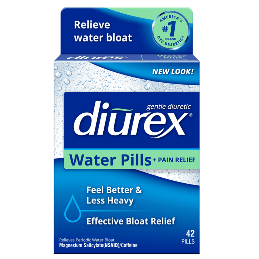 DIUREX Water Pills Pain Relief provide prompt and effective* relief from periodic water bloat, cramps, minor headaches and aches. Diurex also helps get rid of the related fatigue and the uncomfortable and heavy feelings of periodic water bloat.