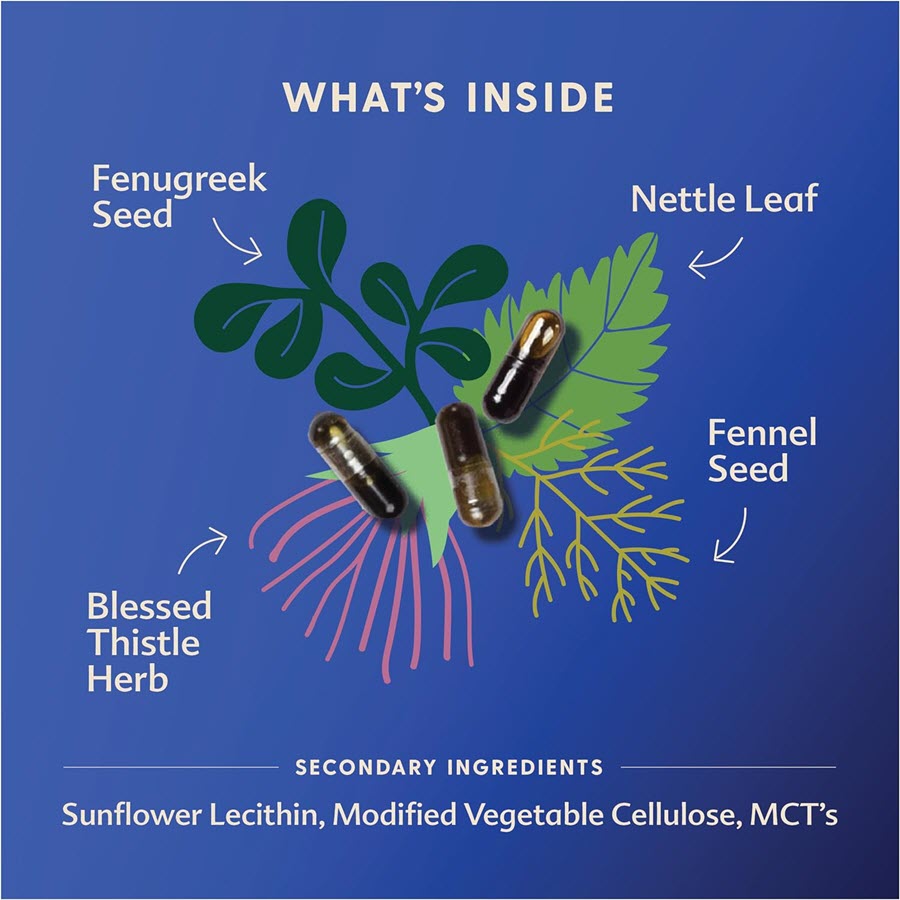 - Organic Herbs: Fenugreek seed, blessed thistle, nettle, and fennel are blended together to create this lactation supplement for nursing and pumping moms.