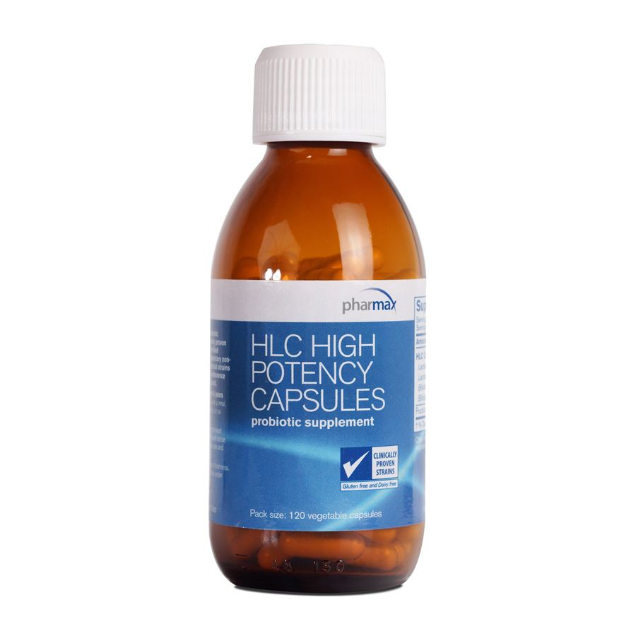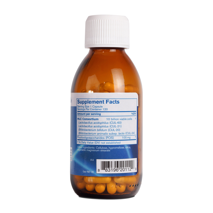 HLC High Potency Capsules provides a combination of four strains of proprietary, human-sourced probiotics and fructooligosaccharides (FOS) that helps to promote gastrointestinal health in adults and children. In a randomized, placebo-controlled trial involving 22 adults, daily supplementation with a probiotic containing Lactobacillus acidophilus supported a healthy microflora balance. Lactobacilli and Bifidobacteria, the most commonly used probiotics, help colonize the intestines and mediate the permeability of epithelial cells.*